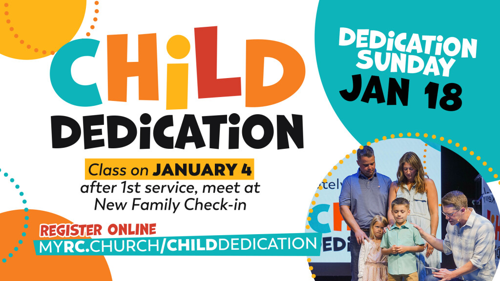 Considering dedicating your child to the Lord? Please register & attend a brief (required) class. Class is Sun, Jan 4. Meet at New Family Check-In after 1st service at all campuses. Dedications will be Sun, Jan 18.